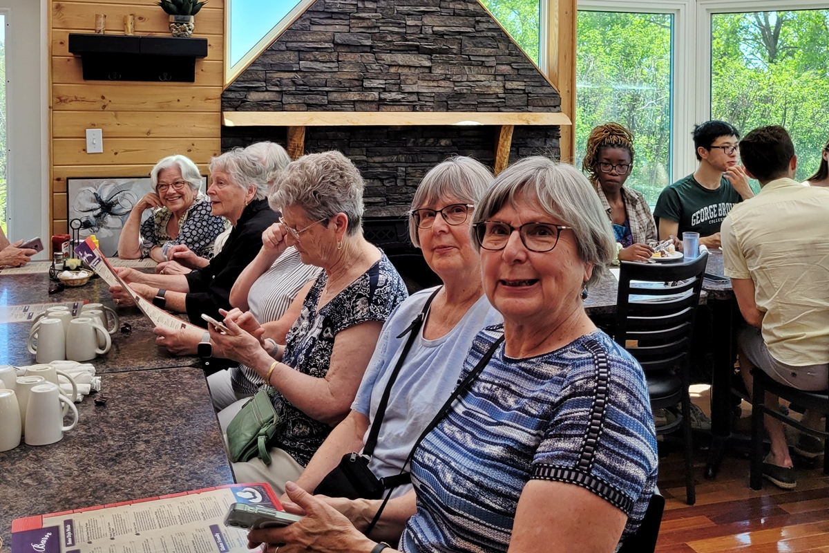 Members of the 1967 degree class visitng at a restaurant