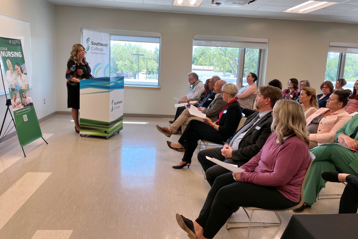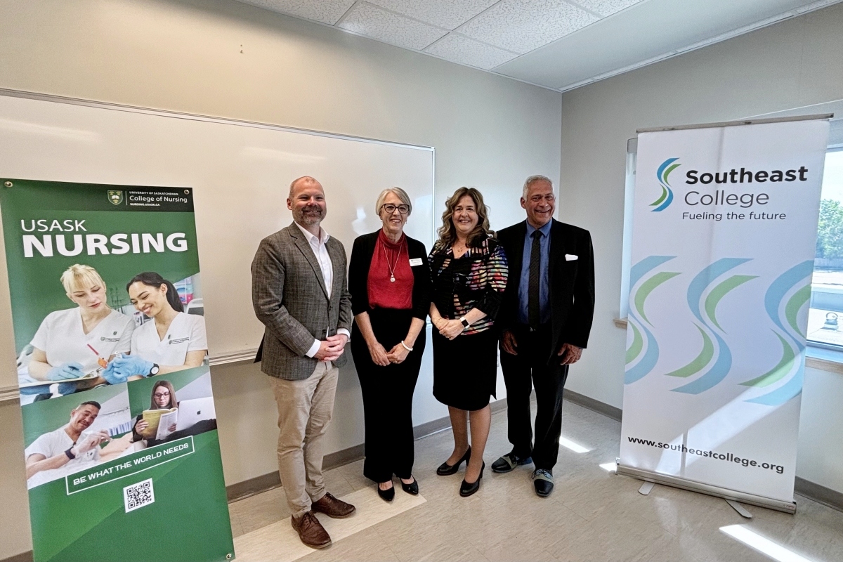 Five people seated in a row smiling. Behind them stands 15 people smiling.
