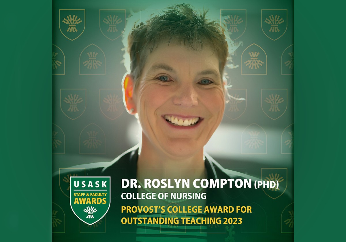 University of Saskatchewan (USask) College of Nursing associate professor Dr. Roslyn Compton (PhD) is the College of Nursing recipient of this year’s annual USask Provost's Award for Outstanding Teaching, which recognizes an outstanding teacher in each College at the University of Saskatchewan.